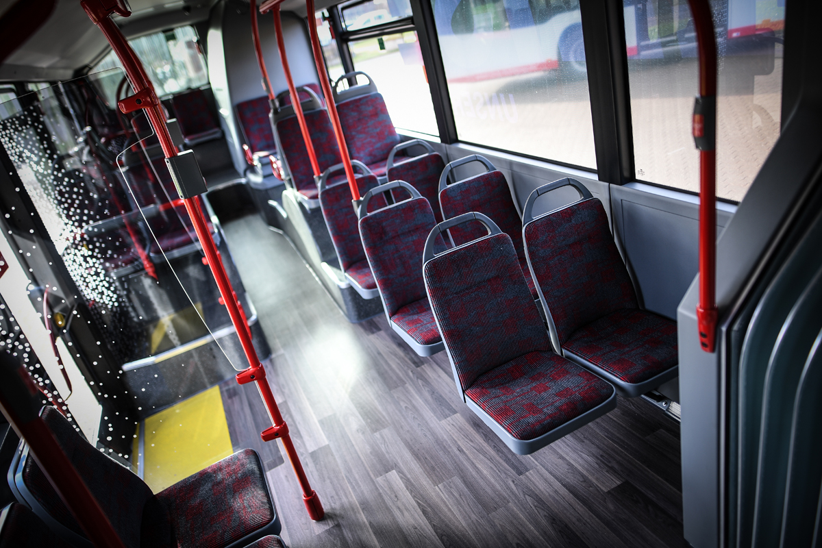 Im Bereich der zweiten Tür verfügen die Elektrobusse über gleich zwei Sondernutzungsflächen in Fahrtrichtung links und rechts für Rollstühle, Kinderwagen etc. Sogar an Befestigungsgurte für Rollatoren ist gedacht. Für weitere Fahrgäste sind in diesen Bereichen Klappsitze vorgesehen.