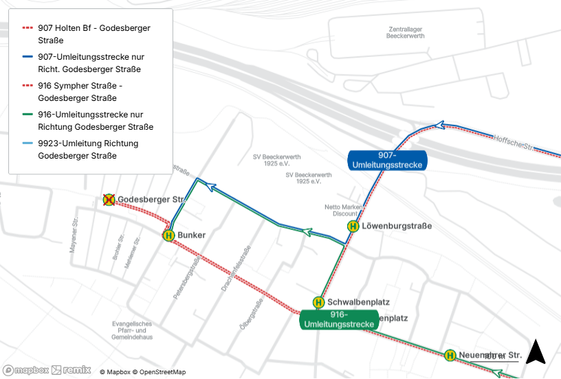 Die Haltestelle „Godesberger Straße“ entfällt. Die DVG bittet die Fahrgäste die Haltestelle „Bunker“ zu nutzen. Die Haltestelle „Bunker“ in Fahrtrichtung Godesberger Straße entfällt ebenfalls.