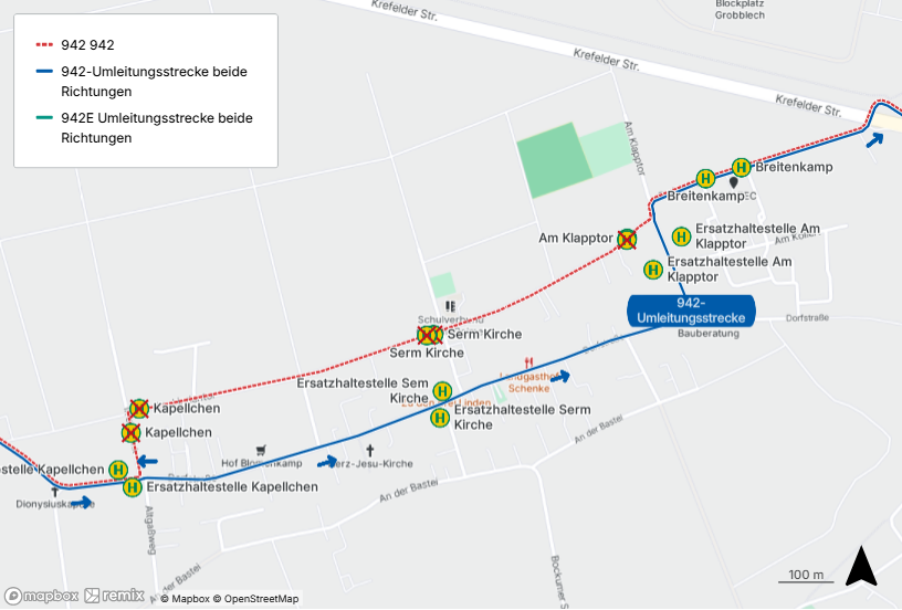 Die Busse fahren zwischen den Haltestellen „Breitenkamp“ und dem regulären Linienweg eine Umleitung.